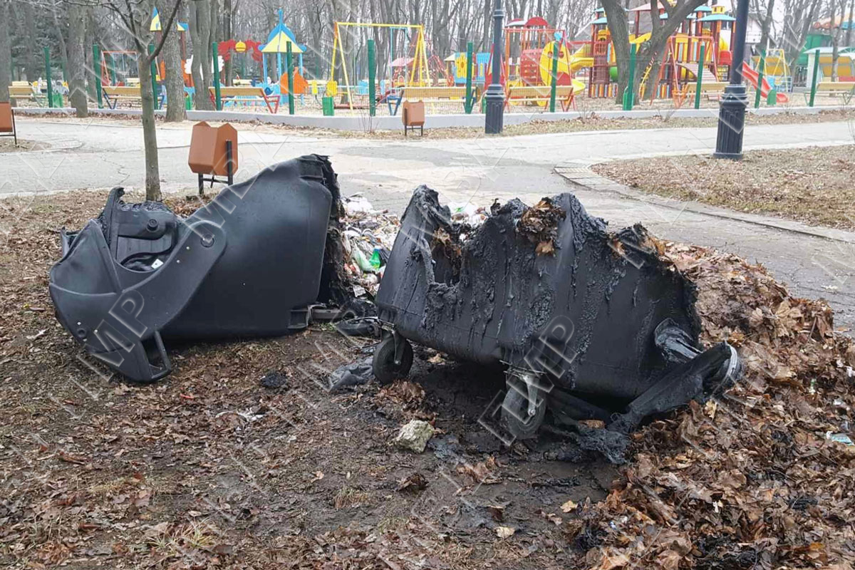 В то же время в парке произошло возгорание трёх мусорных контейнеров около фонтана. Огнеборцы справились с огнём в течение минуты. На деревья и кустарники пламя не перекинулось. И в этом случае обнаруженные на месте происшествия улики указывают на то, что был совершён поджог.