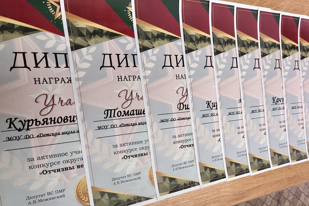 Тирасполь, 18 февраля. /Новости Приднестровья/. Для юных тираспольчан, проживающих на избирательном округе № 42 «Комсомольский», в честь грядущего Дня защитника Отечества депутат Верховного Совета Андрей Межинский и его команда организовали творческий конкурс «Отчизны верные сыны…».