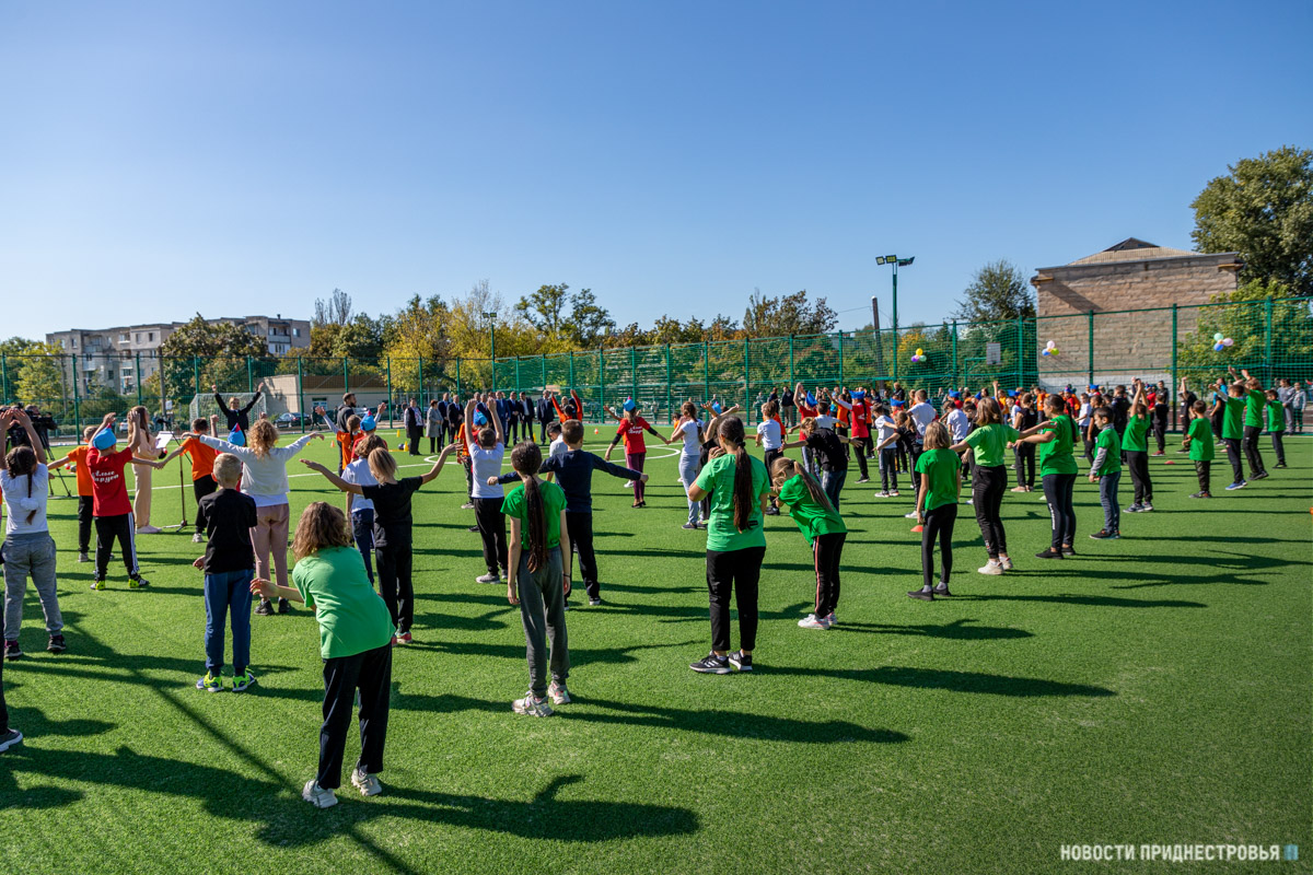 Тирасполь, 27 сентября. /Новости Приднестровья/. В Тирасполе, в микрорайоне Октябрьский, возле школы № 18, появился новый стадион. В торжественном открытии спортивного объекта принял участие Президент ПМР Вадим Красносельский. Среди гостей праздника также глава Правительства Александр Мартынов и председатель Верховного Совета Александр Коршунов.