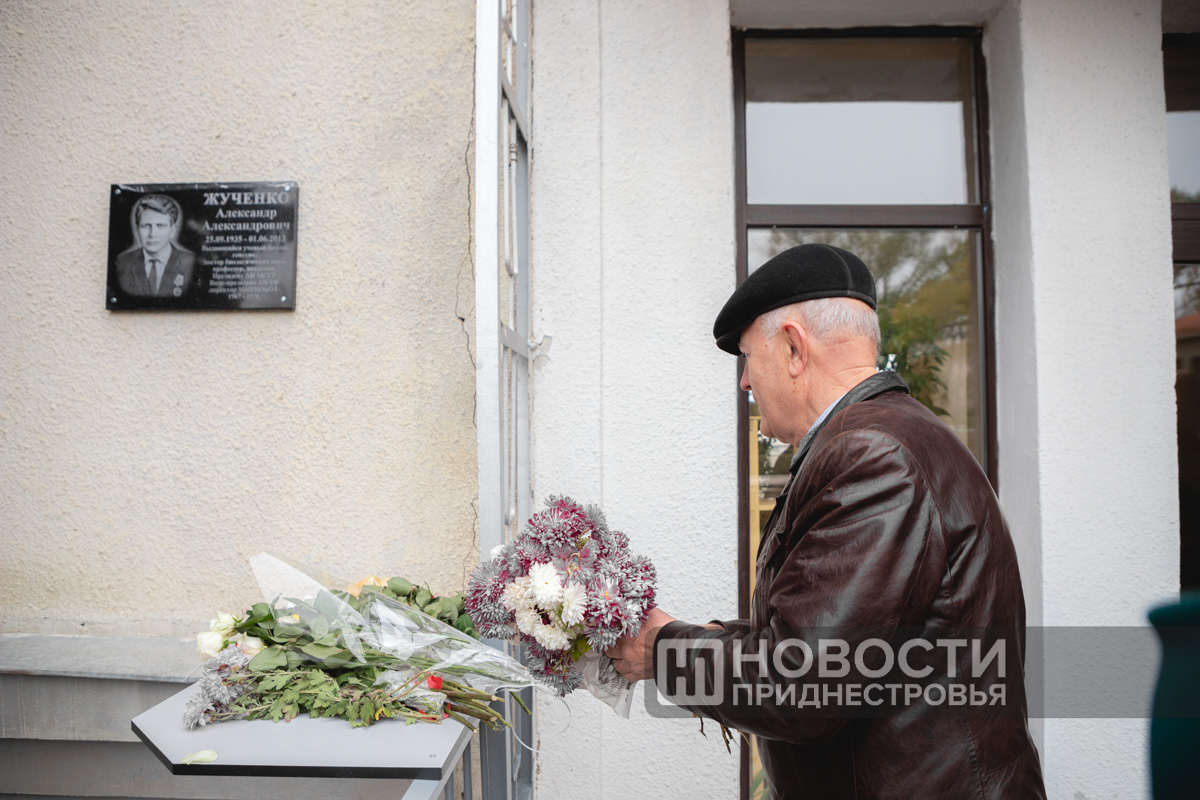 Тирасполь, 24 ноября. /Новости Приднестровья/. В Тирасполе сегодня открыли Мемориальную доску в честь выдающегося учёного-биолога и генетика Александра Жученко. Она теперь украшает главный вход Приднестровского НИИ сельского хозяйства, которым он руководил почти десять лет начиная с конца 1960-х годов.