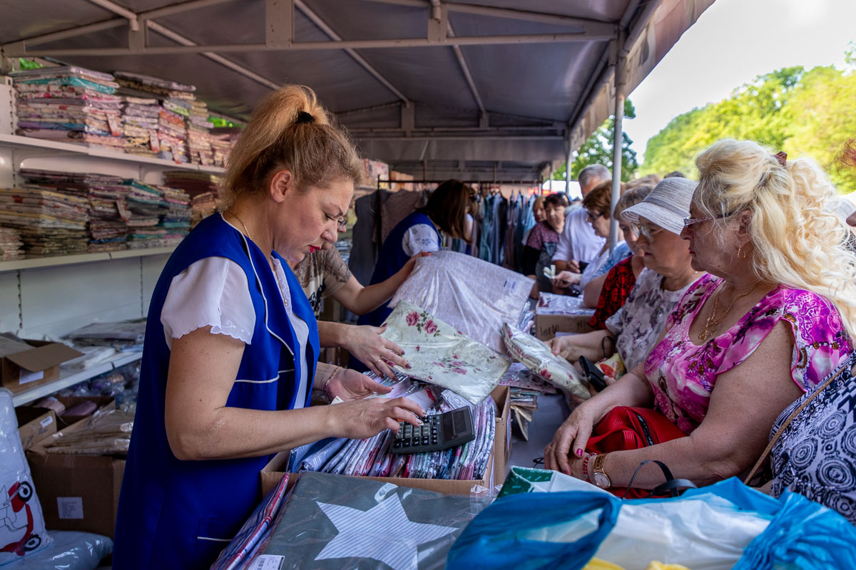 Как всегда в этот день, у каждой торговой точки текстильных, швейных и обувных предприятий были сотни покупателей. Товары расходились как горячие пирожки. Продавцы едва успевали рассказать о продукции и рассчитать клиента.