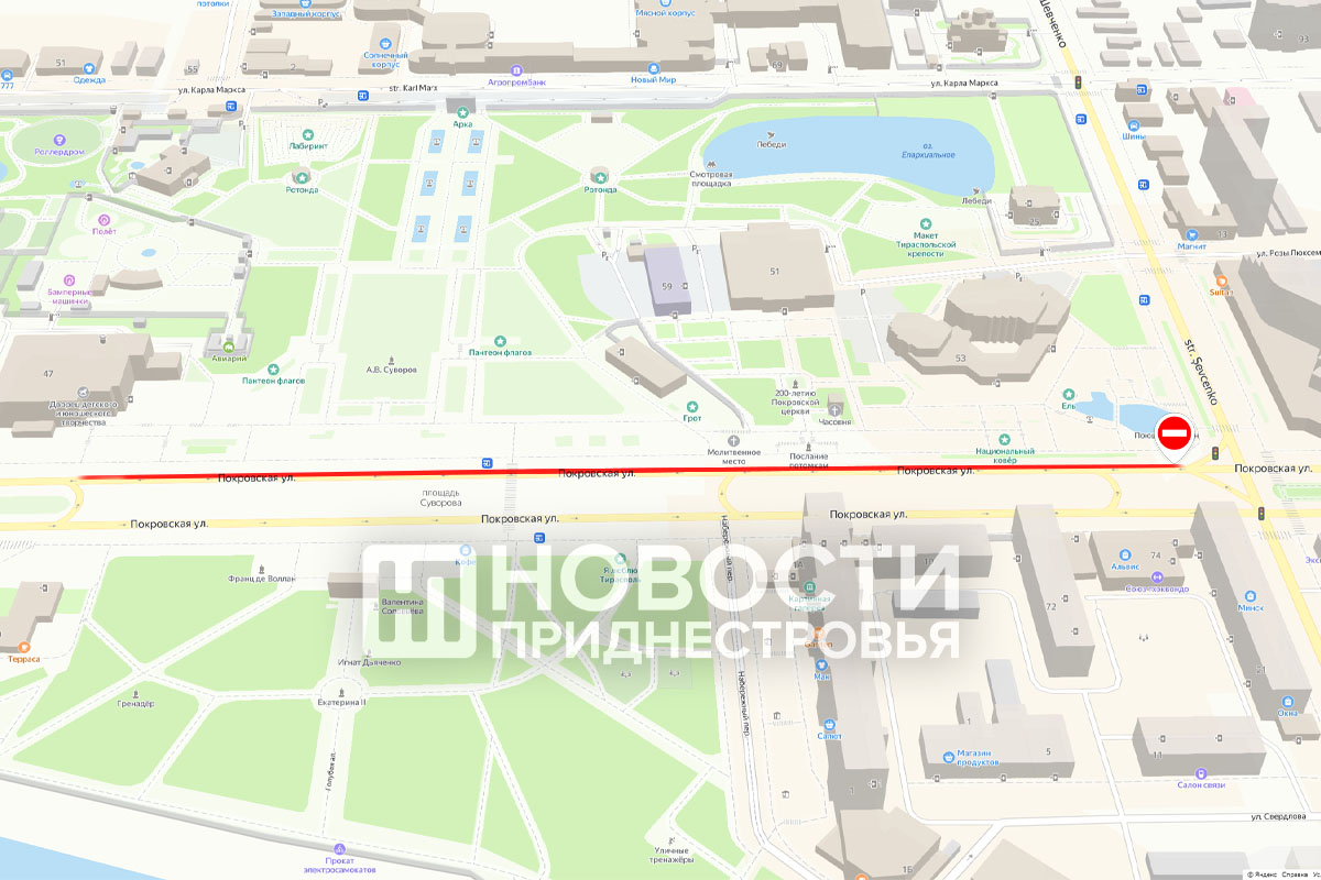 Тирасполь, 28 июня. /Новости Приднестровья/. С 1 по 22 июля будет полностью перекрыто движение автотранспорта по нечетной стороне улицы Покровской на участке от улицы Шевченко до здания ДДЮТ. Это связано с ремонтными работами, которые сейчас там ведутся.