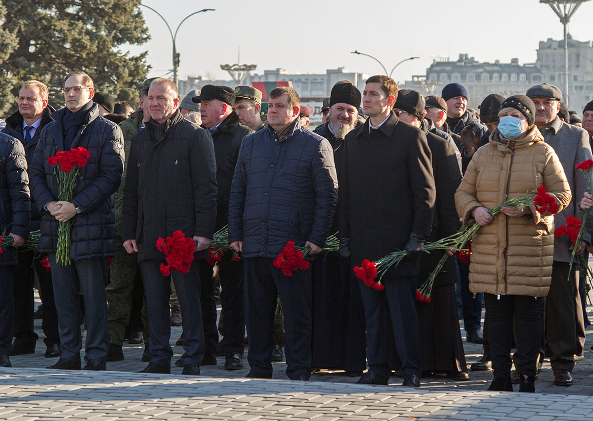 Траурный венок от имени Президента к памятнику «Сынам Отечества - воинам Афганской войны 1979-1989 гг.» возложил министр обороны Олег Обручков. Сотни красных гвоздик, принесенных участниками церемонии, легли у подножия мемориала как дань уважения неоценимой жертве воинов-интернационалистов во имя Родины.