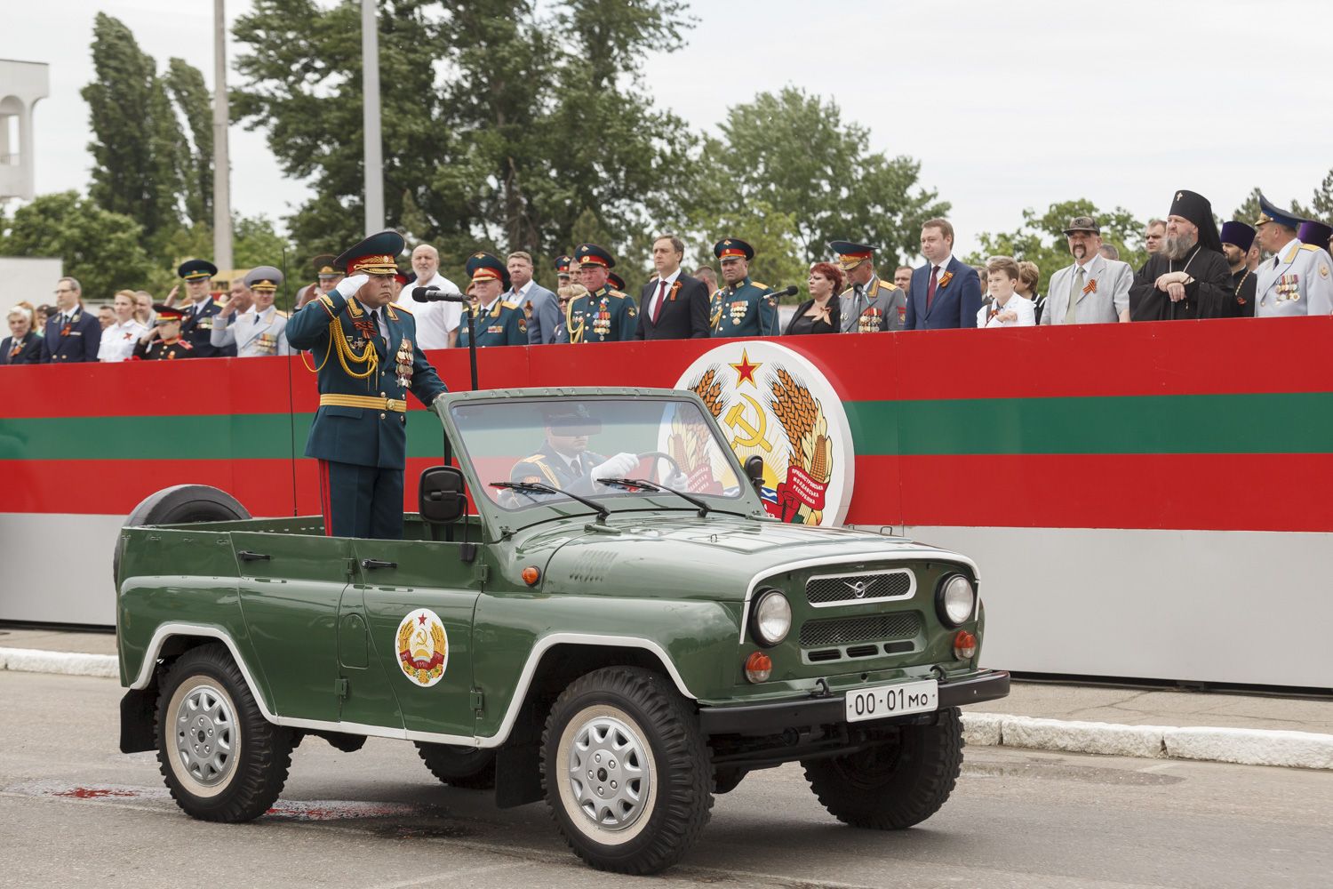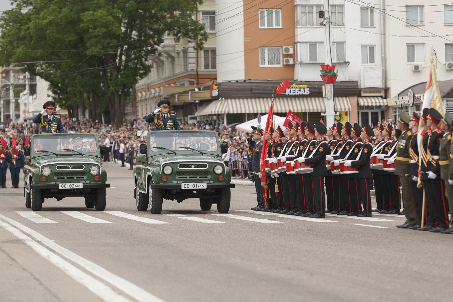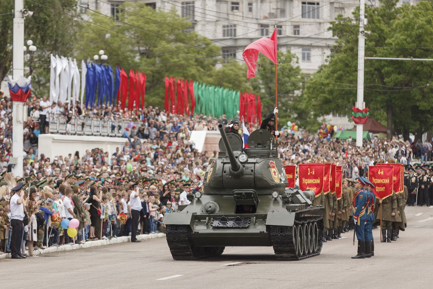 Далее парадным маршем перед гостями праздника пройдут десять парадных расчетов, в том числе курсанты Военного института в форме времен Великой Отечественной войны и штандартами всех фронтов. Впервые в нём примут участие воспитанники Тираспольского Суворовского военного училища.