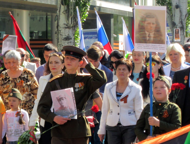 Тираспольчане и гости города прошли по центральной улице с портретами фронтовиков в руках