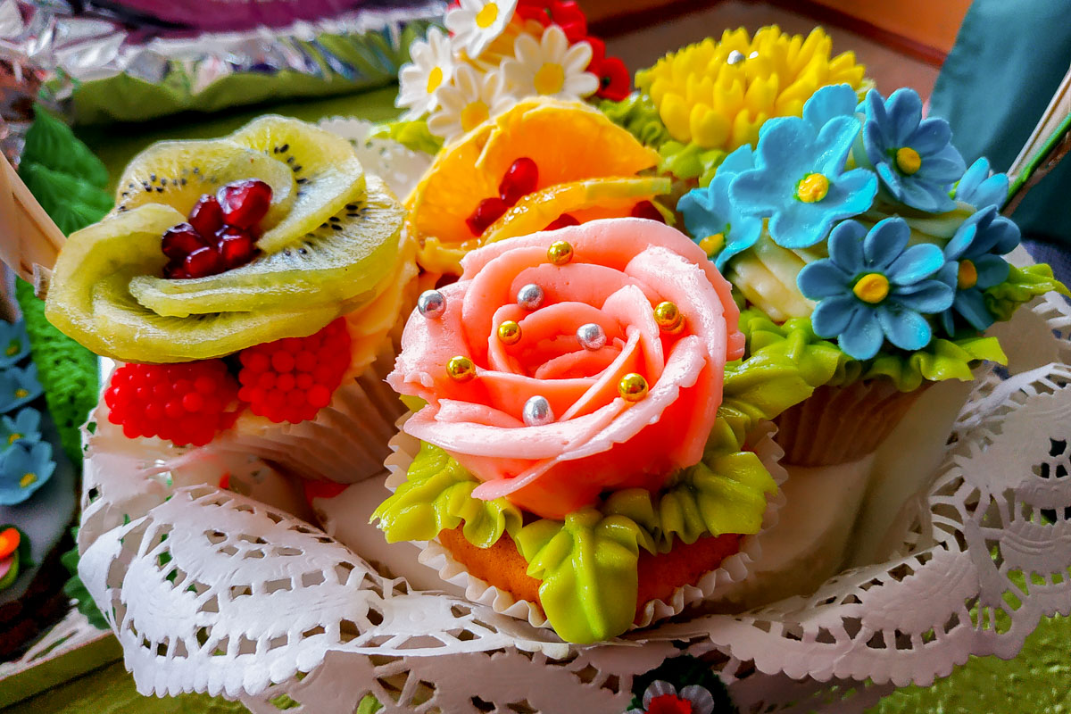 Второй этап – практический: здесь конкурсантам предстояло приготовить капкейки. Набор для теста у всех был одинаковый, а оформление кексов зависело от самих кондитеров. Для этого они могли использовать масляный крем, фрукты и мастику. На приготовление капкейков выделили 1,5 часа.