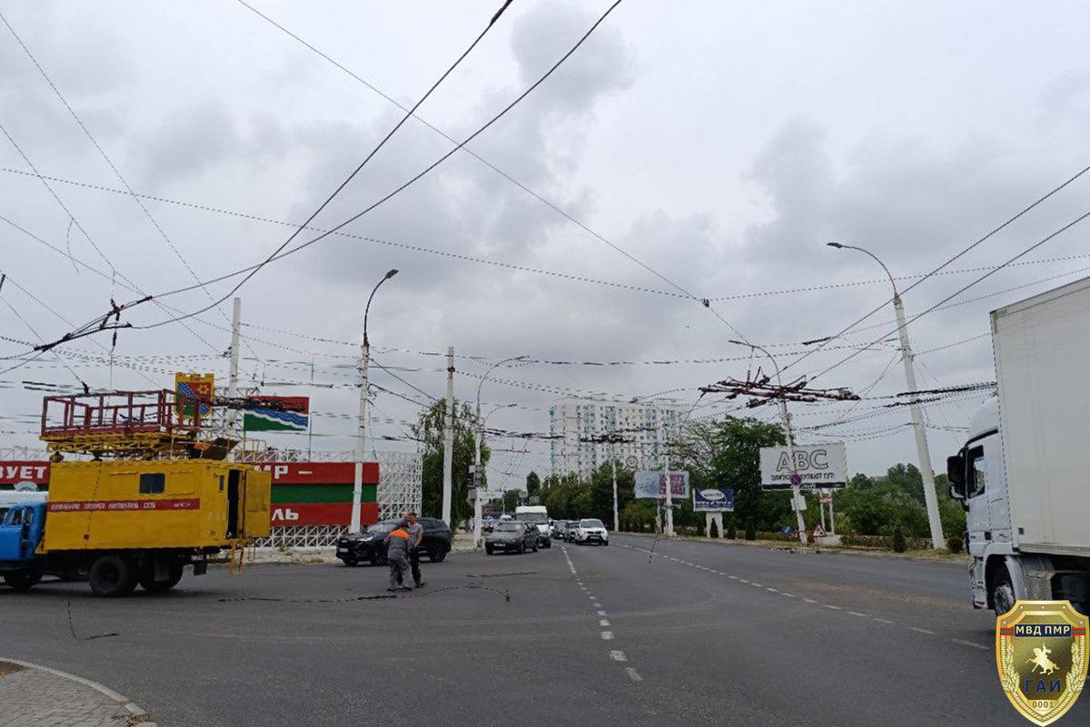На перекрёстке возник затор, движение было затруднено. Для регулирования транспортного потока прибыл экипаж ГАИ. За короткий срок инспекторы обеспечили бесперебойное движение, а сотрудники Тираспольского троллейбусного управления устранили технические неисправности и возобновили работу линии.