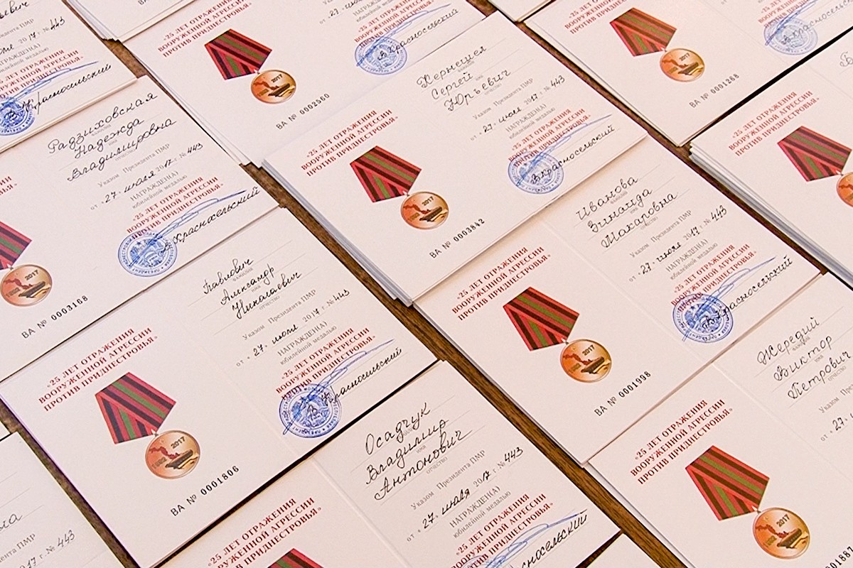 Всего юбилейной медали «25 лет отражения вооружённой агрессии против Приднестровья» удостоятся более трех тысяч участников боевых действий и защитников ПМР.
