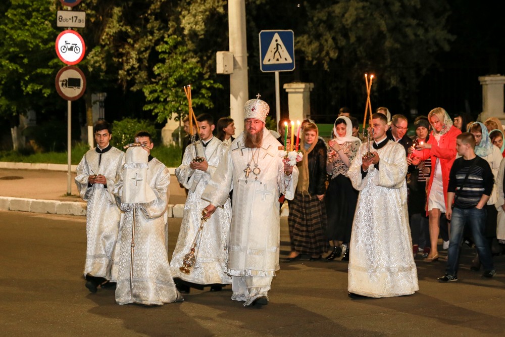 Храмы украшают белыми цветами, священнослужители облачаются в торжественные одеяния. В эту ночь пение радостное и легкое, горит множество свечей и в их свете золотятся таинственно оклады икон. Служба идет в сопровождении Благовеста – особенного колокольного перезвона, возвещающего начало светлого праздника. Главные в эту ночь и ближайшие дни будут традиционные приветствия «Христос Воскресе!».