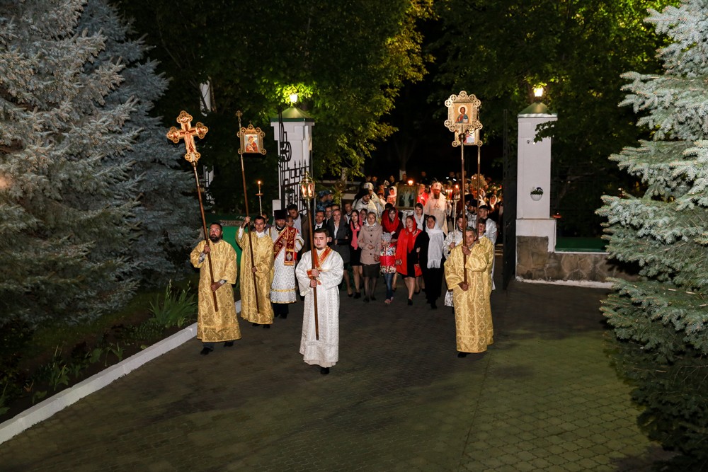 Ровно в полночь начинается Заутреня. Под звуки Благовеста священнослужители с крестом, хоругвями (священным знаменем), иконами, благовониями и пасхальными светильниками выходят из алтаря и шествуют через всю церковь к выходу. С этого момента начинается крестный ход, во время которого впереди несут фонарь с Благодатным огнём, следом — большой запрестольный крест, образ Богородицы. Последняя пара священников несёт Евангелие и икону Воскресения. Замыкает шествие предстоятель храма с тремя перекрещёнными и связанными свечами и еще одним крестом.