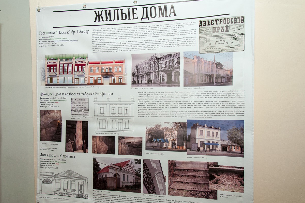 «Судьба нашего города так сложилась, что нет ни довоенного, ни дореволюционных архивов. Очень многие вещи в натуральном виде сохранились, а какая-то документация и описание, которые бы рассказывали, какие изменения произошли, — нет. Поэтому для нас важно, что ребята так дотошно, так внимательно, с изучением мельчайших деталей и с соотнесением этих деталей к тому стилю, который главенствовал в момент создания зданий, воссоздают это», — отмечает директор Тираспольского объединённого музея Алла Мельничук.