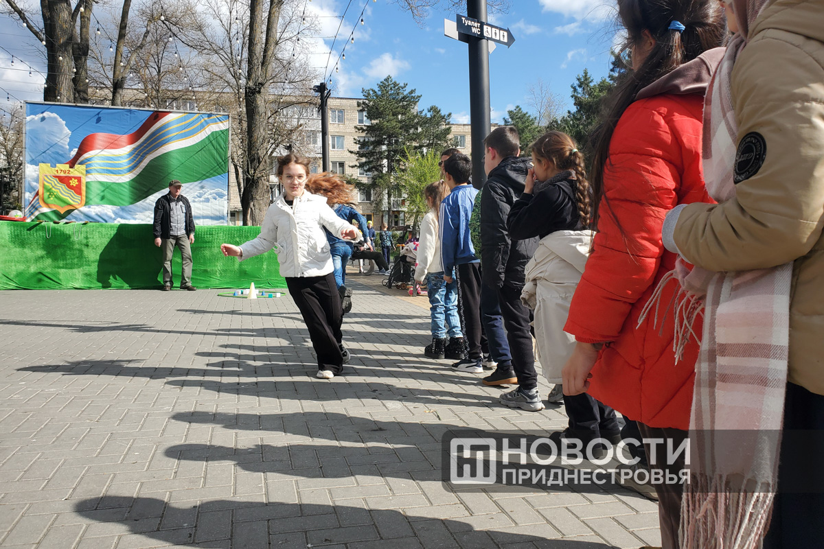 Тирасполь, 12 апреля. /Новости Приднестровья/. Праздничные мероприятия, посвящённые 81-й годовщине освобождения Тирасполя от немецко-фашистских захватчиков и Дню космонавтики, прошли и в столичном сквере Авиаторов. Для юных жителей города провели праздничную игровую программу.