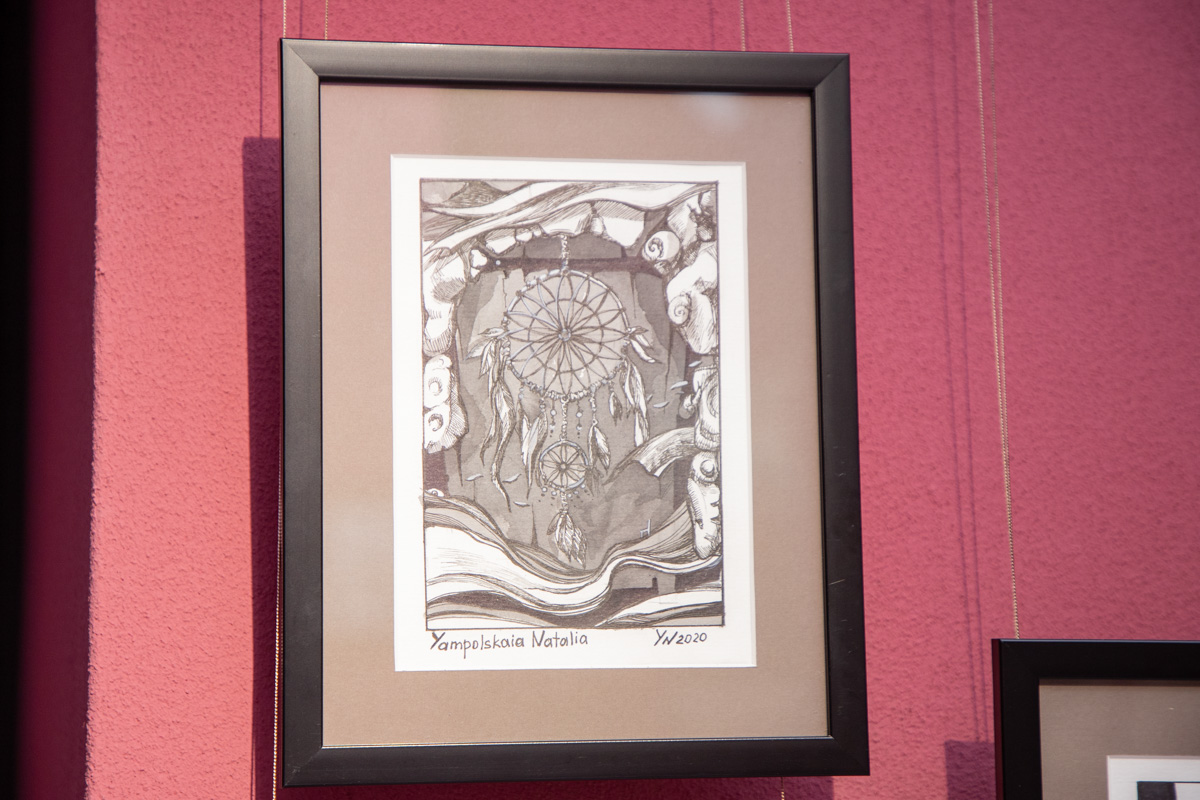 В первом зале можно увидеть «Лабиринты отражений» Натальи Ямпольской. Участница и куратор многих международных арт-проектов представила более 50-ти произведений живописи, оригинальной графики, а также работы декоративно-прикладного творчества. Яркие и сочные, они будто переносят в другую реальность. Прослеживаются и национальные мотивы.
