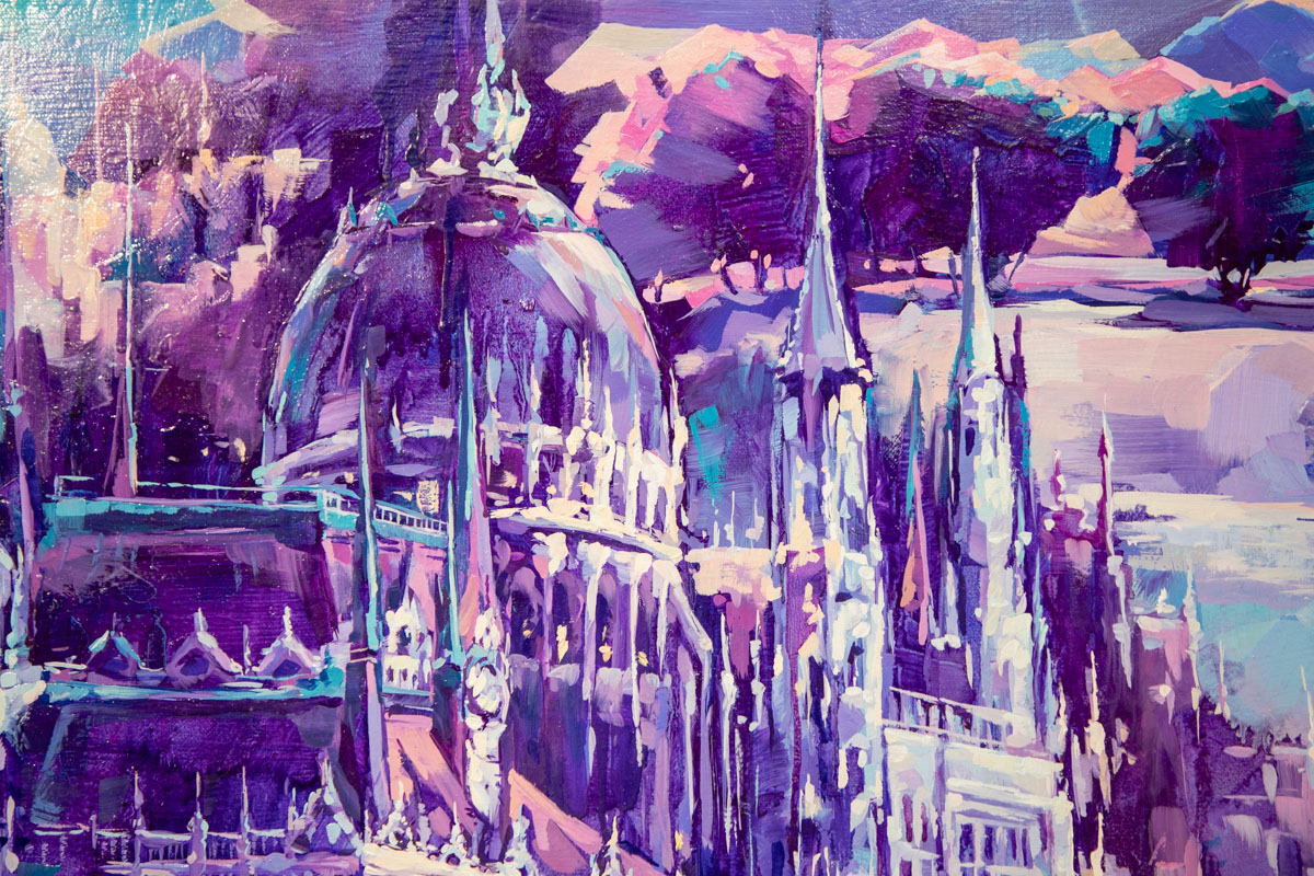 Экспозиция также интересна серией триптихов. Невозможно оторвать взгляд от «Ирисов», «Воздушных замков Будапешта», «Сумерек» и других.