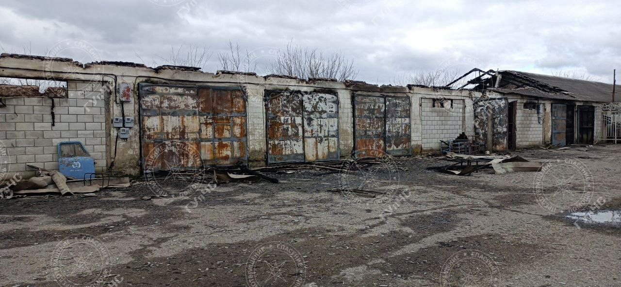 Огнём полностью уничтожены 5 складов с мебелью и техникой. Все деревянные конструкции крыши сгорели и обрушились.