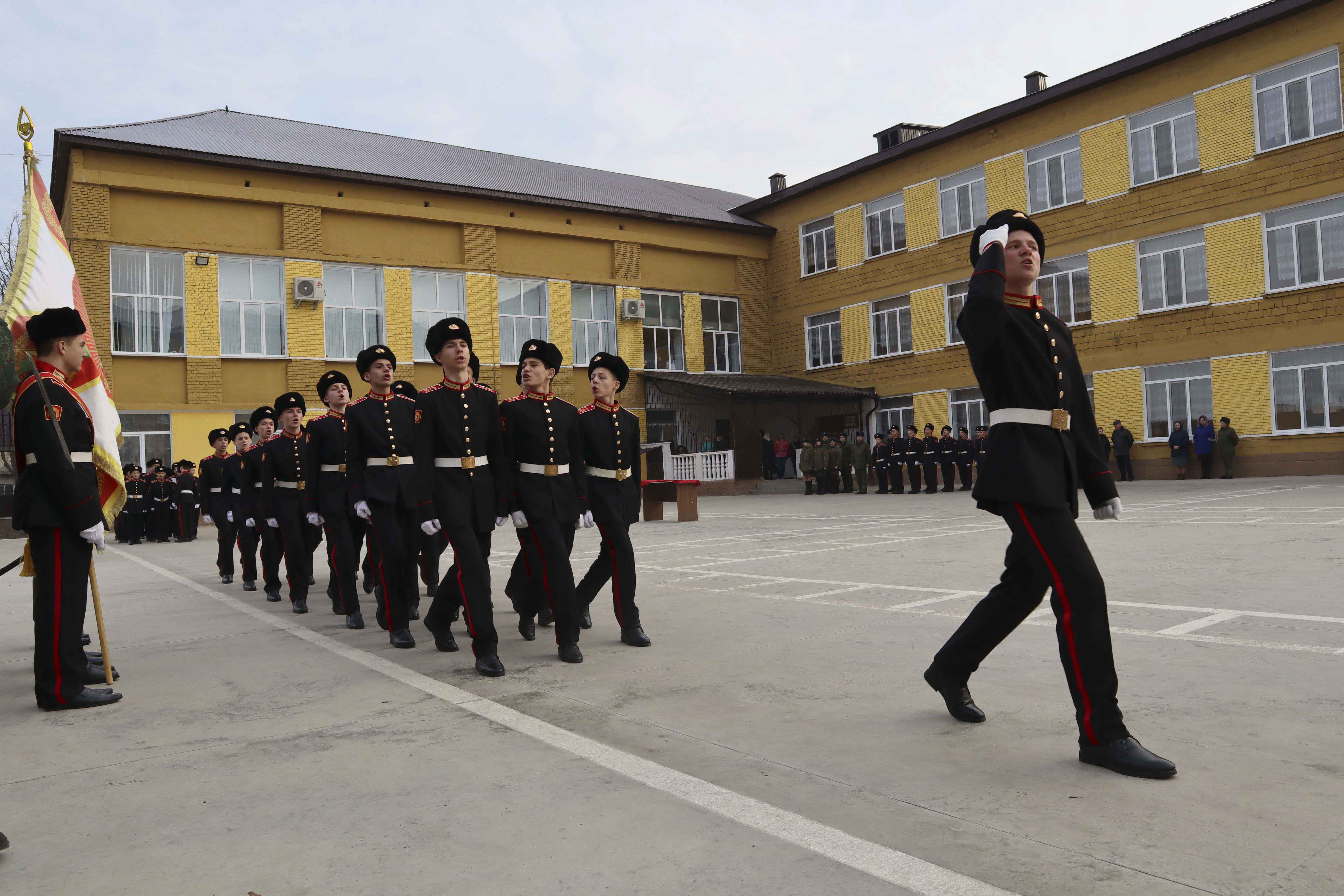 Для суворовцев торжественный день начался на плацу. Курсанты продемонстрировали свои навыки в построении и исполнении строевой песни и воинского приветствия.