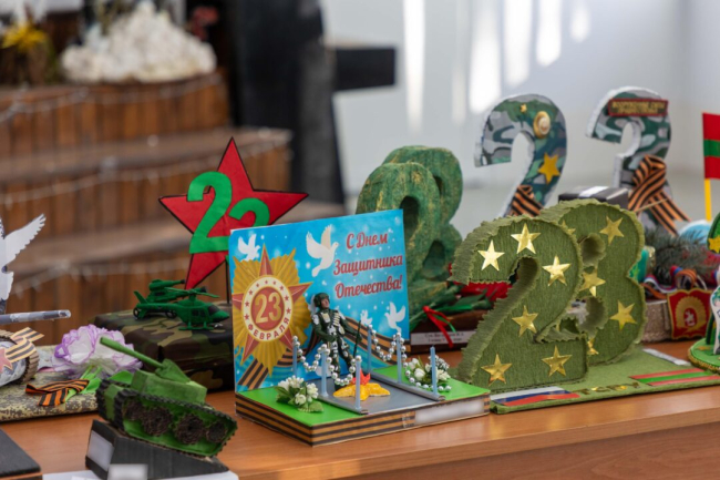 Тирасполь, 16 февраля. /Новости Приднестровья/. В преддверии Дня защитника Отечества в Тираспольском Суворовском военном училище организовали экспозицию творческих работ.