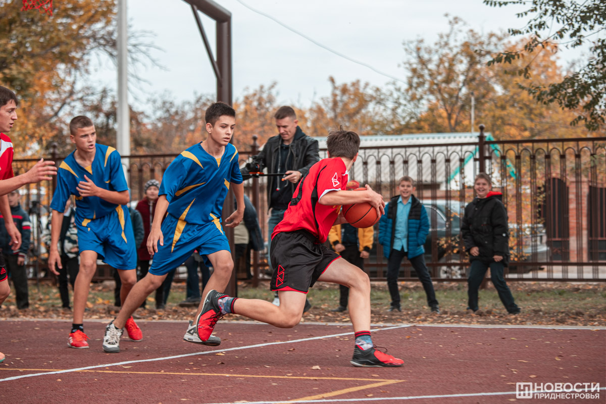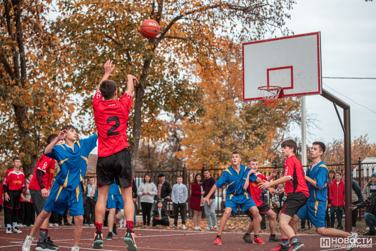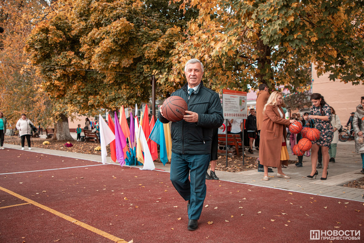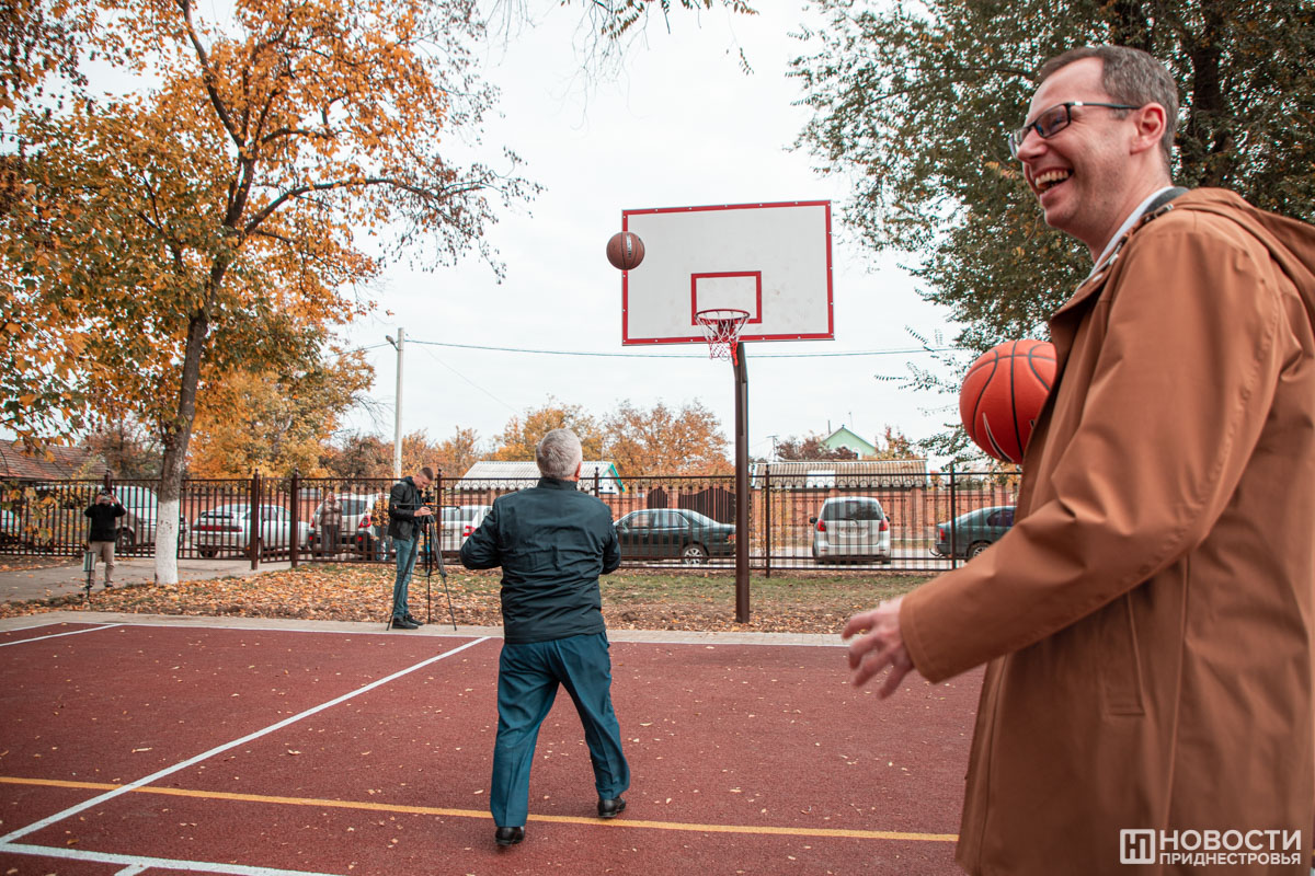 Новую площадку открывали торжественно. Руководство района и школы отмечали, как это важно для всего села, и даже пробовали закинуть первый символичный мяч в корзину.