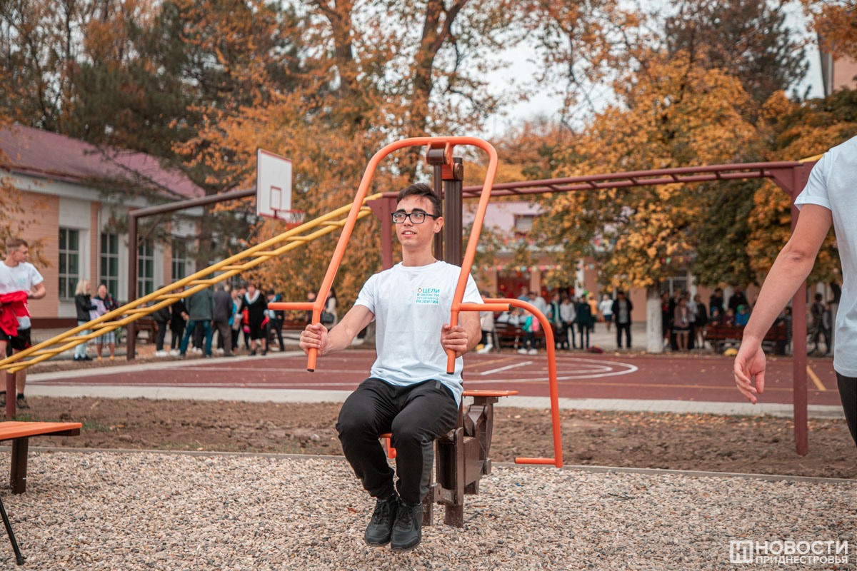Помимо баскетбольно-волейбольной площадки, в новом спорткомплексе есть уличные тренажёры. Там можно качать пресс, заниматься ходьбой или оттачивать навыки воркаута.