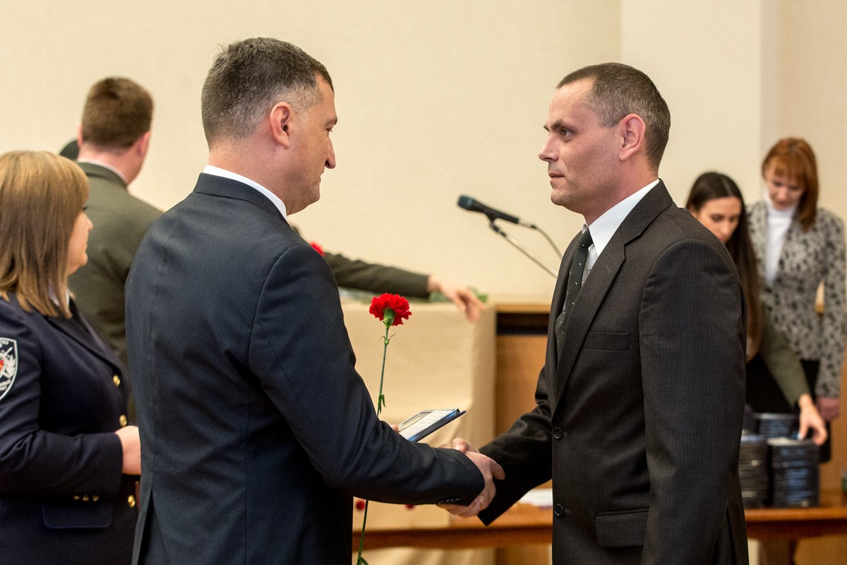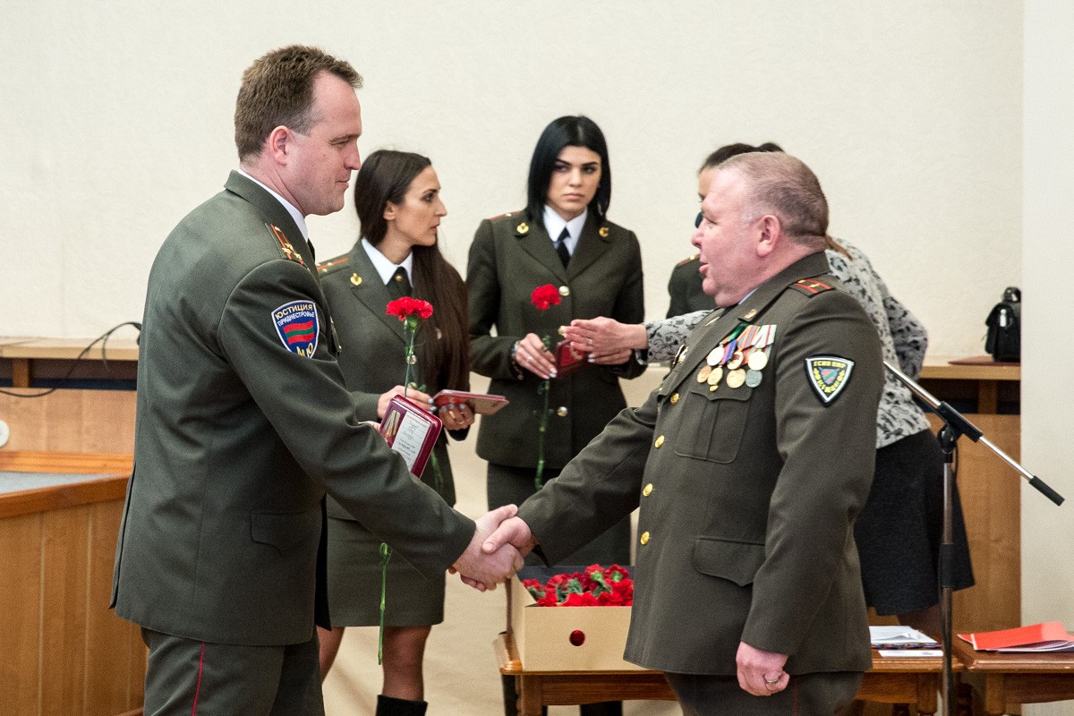 Тирасполь, 9 декабря. /ИА «Новости Приднестровья»/. Государственной службе исполнения наказаний Министерства юстиции – 25 лет. В честь юбилея сегодня в Тирасполе чествовали лучших её сотрудников. Госнаграды, грамоты и благодарственные письма Президента, а также юбилейные медали «25 лет уголовно-исполнительной системе» им вручили Председатель Правительства Павел Прокудин, министр юстиции Ольга Зварыч и первый замминистра юстиции, начальник профильной госслужбы Николай Земцов.