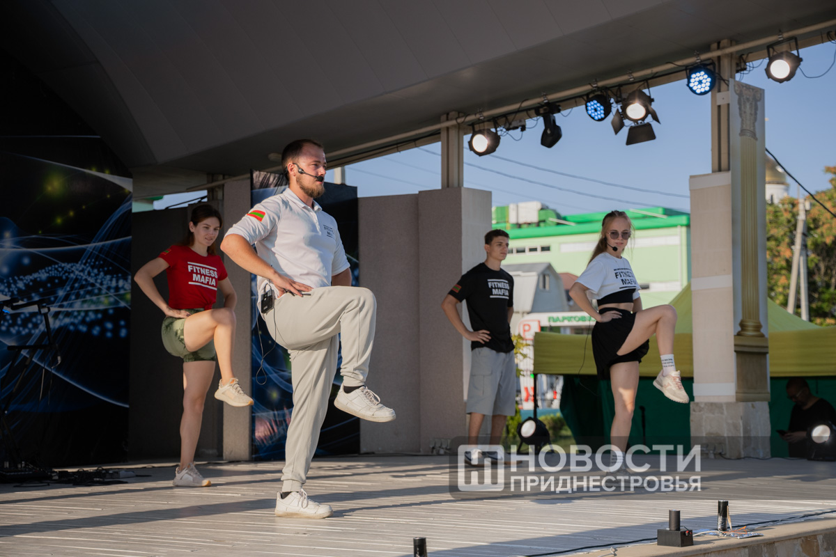 Спортивная часть праздника включала фитнес-разминку от команды Fitness Mafia и танцевальный мастер-класс в стиле хип-хоп.