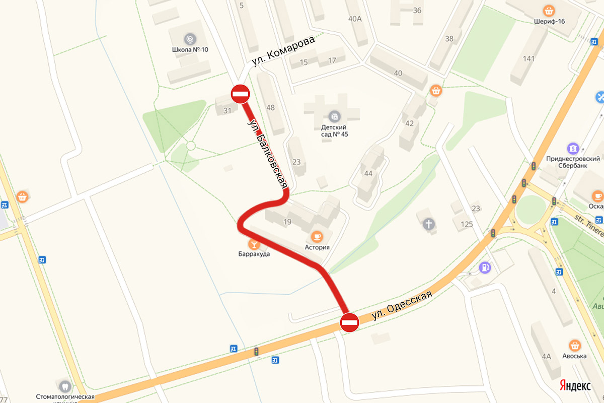 Тирасполь, 12 июня. /Новости Приднестровья/. Движение автотранспорта по улице Балковской в Тирасполе – на участке от улицы Одесской до Комарова – будет полностью перекрыто до 30 июня.