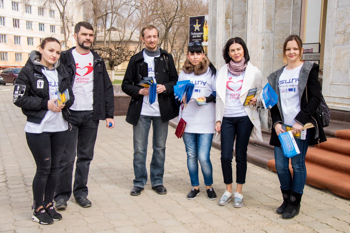 В самых оживленных общественных местах двух городов добровольцы распространили информационные листовки и флажки, говорили с прохожими о проблемах, с которыми сталкиваются семьи, воспитывающие детей с аутизмом