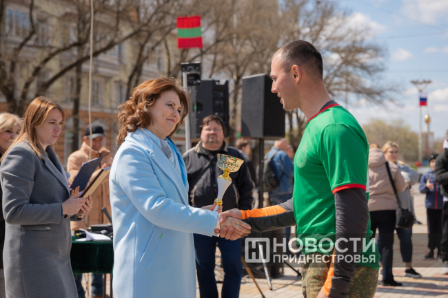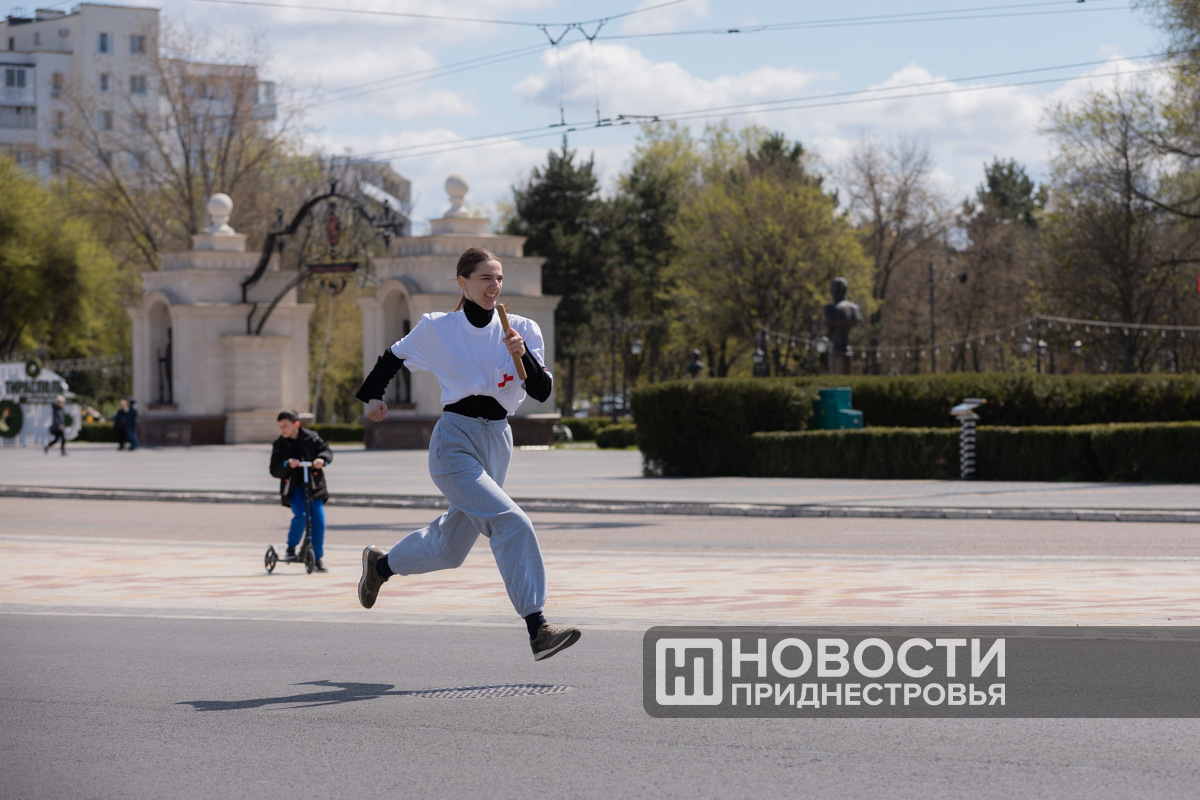Тирасполь, 12 апреля. /Новости Приднестровья/. По традиции ко Дню освобождения города от оккупантов на главной площади столицы и её центральной улице прошла легкоатлетическая эстафета. Дистанция - более 3 000 метров. Расстояние разбили на 19 этапов.