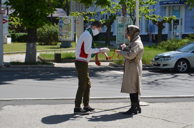 В Тирасполе молодые активисты раздавали георгиевские ленточки