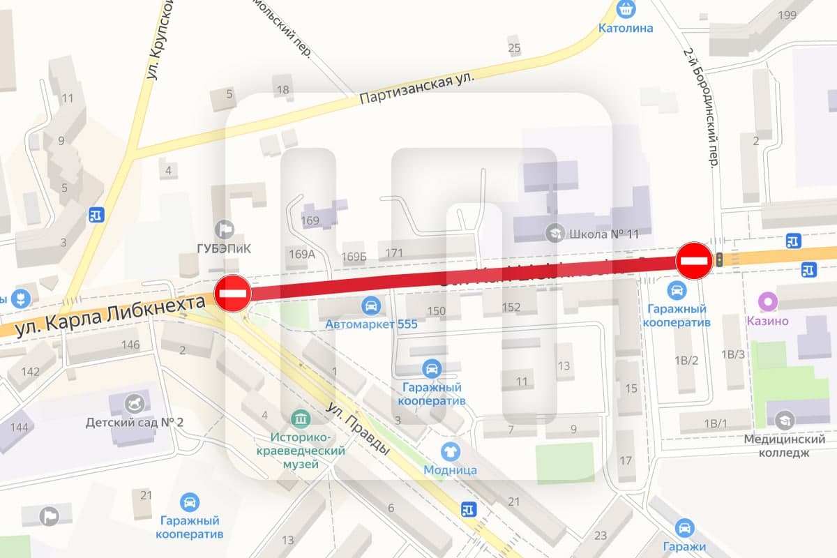 Также в связи с выполнением работ по ремонту магистральной тепловой сети с 10 по 25 мая организовано частичное перекрытие движения автотранспорта по улице К. Либкнехта – от ул. Правды до пер. Чкалова.
