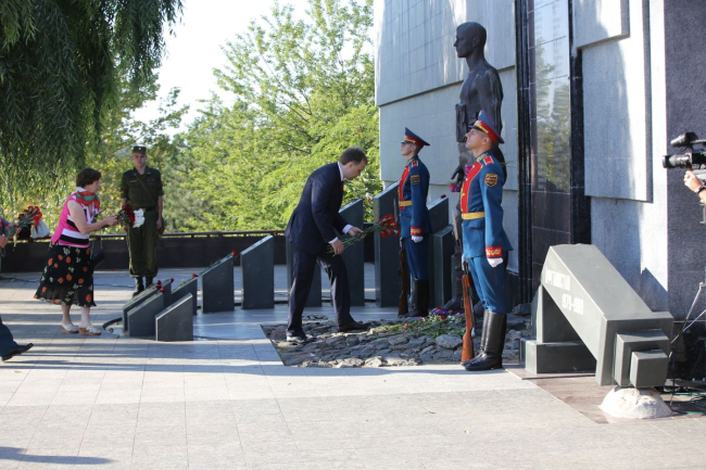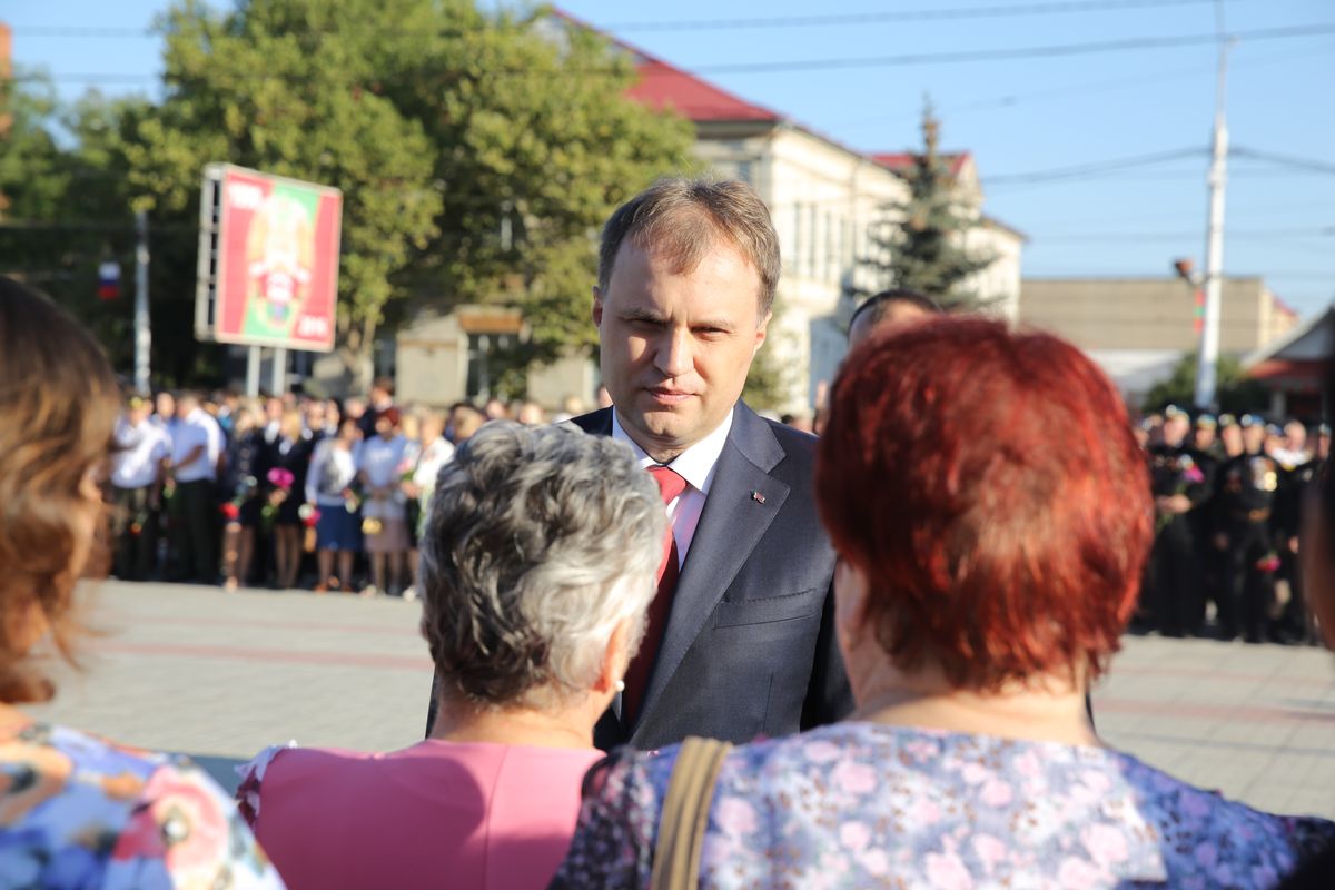 «В День рождения республики на этом святом месте – Мемориале Славы, мы вспоминаем трагические страницы истории Приднестровской Молдавской Республики. Вспоминаем те дни, когда наши земляки с оружием в руках защитили свои семьи в Дубоссарах и Дубоссарском районе, в Бендерах, защитили свою страну. Подвиг наших земляков является примером для подрастающего поколения. От имени приднестровского государства родным и близким погибших хочу пожелать крепкого здоровья, мира стране, международного признания Приднестровью. Вечная память Героям!», - подчеркнул, выступая на митинге, Президент Евгений Шевчук.