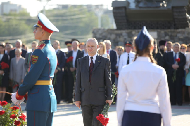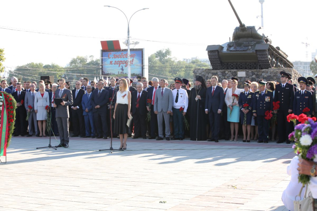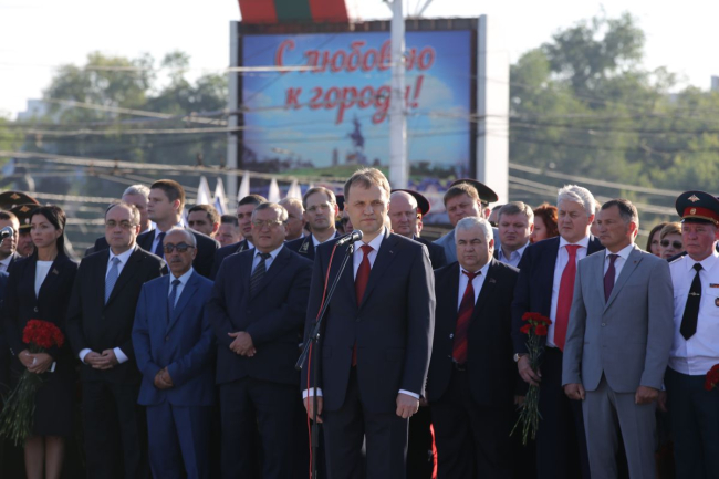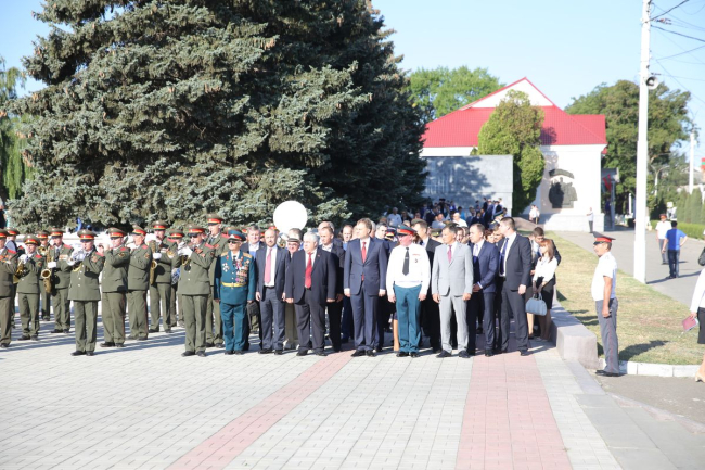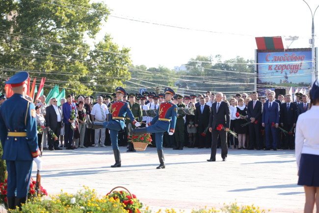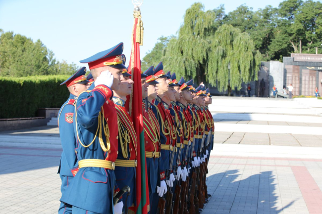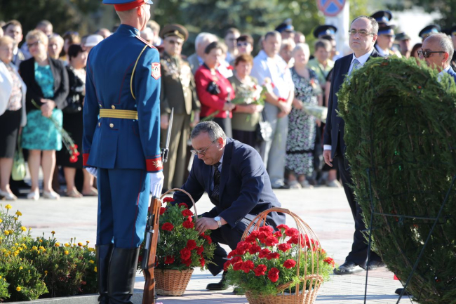 Тирасполь, 2 сентября. /ИА «Новости Приднестровья»/. Сегодня в Приднестровье отмечают 26-ю годовщину со дня образования государства. Мероприятия, посвященные этой дате, в Тирасполе начались ранним утром. По традиции, открыл их митинг памяти на святом для каждого жителя столицы месте – Мемориале воинской Славы. Из года в год, жители города собираются здесь, чтобы отдать дань памяти и уважения тем, кто в самое тяжелое для республики время, встал на защиту близких, отстаивал независимость края, выполнил свой долг с честью.