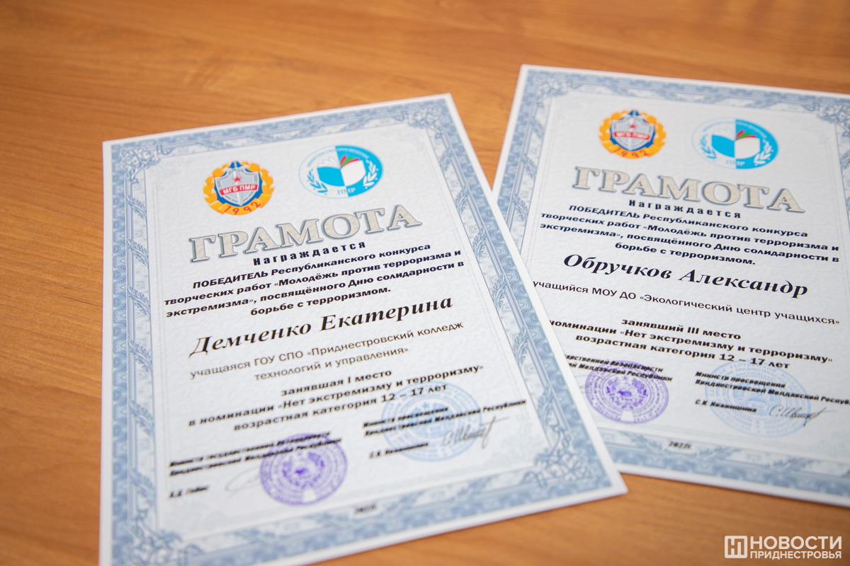 В Тирасполе наградили победителей конкурса «Молодёжь против экстремизма и терроризма»