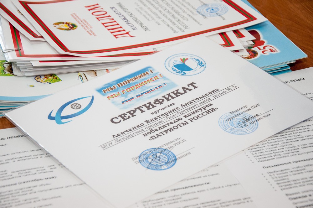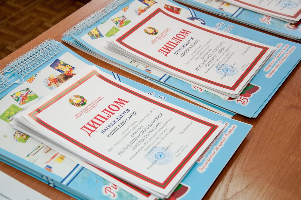 29 Мар.., 2016, 16:24Тирасполь, 29 марта. /ИА «Новости Приднестровья»/. В Министерстве просвещения сегодня наградили победителей республиканского конкурса «Патриоты России». Он проводился ведомством при поддержке Днестровско-Прутского центра Российского института стратегических исследований (РИСИ) с января по март нынешнего года. Как уже сообщало ИА «Новости Приднестровья», участие в конкурсе принимали школьники 8-11 классов. В этом году он проходил под девизом «Мы помним, мы гордимся, мы вместе».