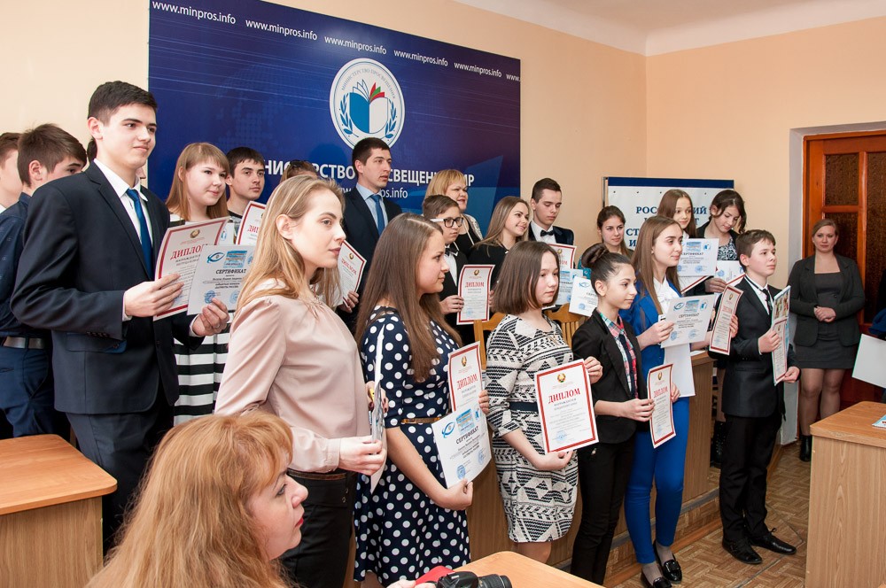 Сегодня в Минпросе 20-ти победителям конкурса «Патриоты России» торжественно вручили дипломы, а также сертификаты на поездку в российские оздоровительные лагеря «Артек» и «Орленок».