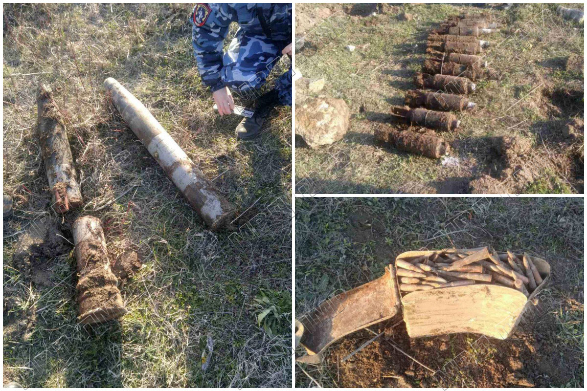 Предмет, внешне похожий на боеприпас, виднелся из-под земли. Специалисты-взрывотехники осторожно осмотрели прилегающую территорию и за несколько часов обнаружили целый арсенал. Найдены одна граната РГ-42, 11 снарядов и 8 зарядов к СПГ-9, металлический пулемётный короб с 344 патронами калибра 7,62 мм, 23 танковых снаряда калибра 125 мм, один фрагмент шашки и один инертный снаряд.