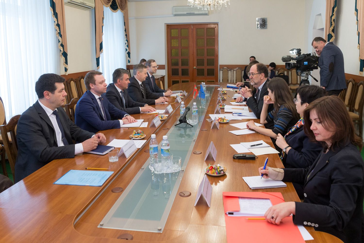 К участию в диалоге с европейскими представителями были приглашены председатель Правительства ПМР Александр Мартынов и министр иностранных дел ПМР Виталий Игнатьев.