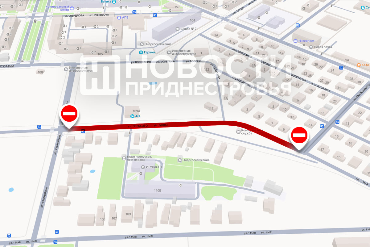 В Тирасполе ограничено движение по улице Горького от переулка Курганного до улицы Полецкого