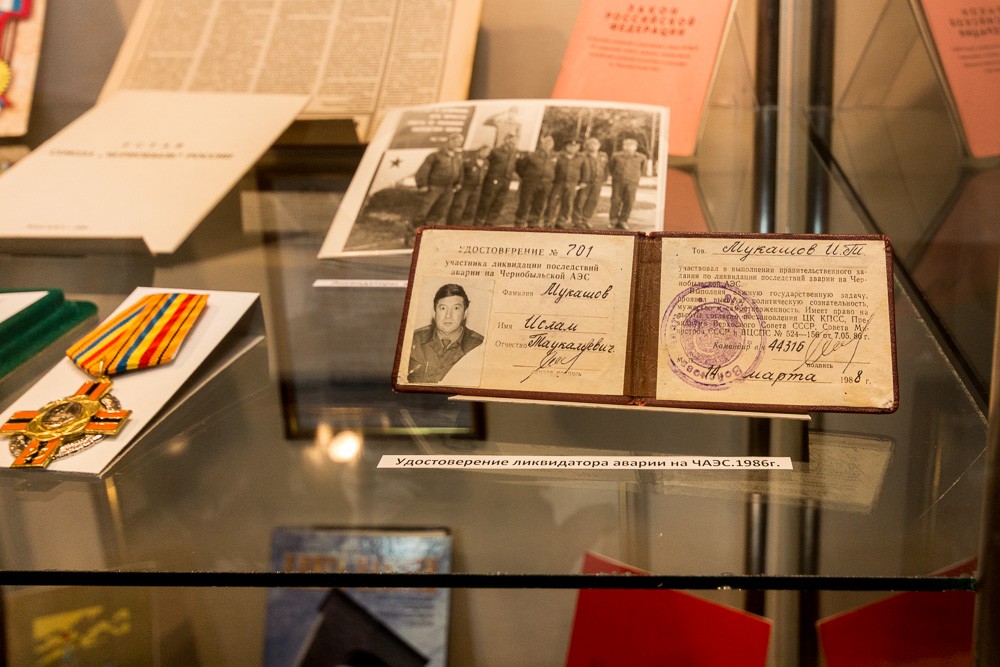 На выставке представлено более 70-ти экспонатов. Среди них — документы, фото, защитные костюмы, дозиметры, предметы одежды и быта, почетные грамоты и награды непосредственных участников ликвидации трагедии в Чернобыле.