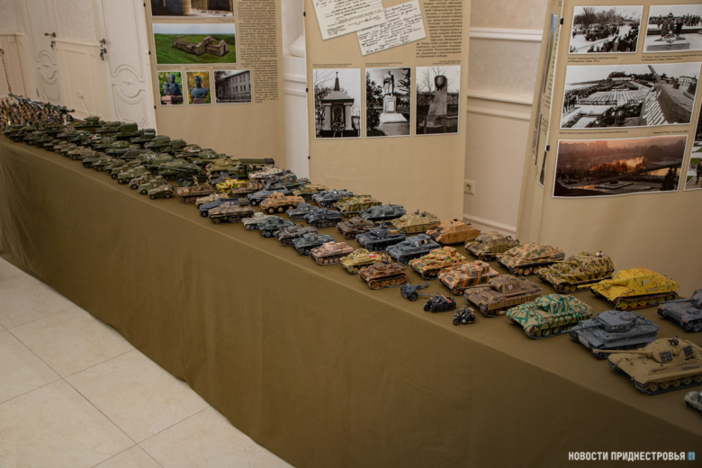 Тирасполь, 7 мая. /Новости Приднестровья/. В преддверии Дня Победы в выставочном зале Екатерининского парка Тирасполя открылась выставка моделей бронетехники времен Второй мировой войны и миниатюрных оловянных солдатиков. Свои коллекции показывают Игорь Трущинский и Валерий Титоров. Все модели представлены в масштабе 1:35.