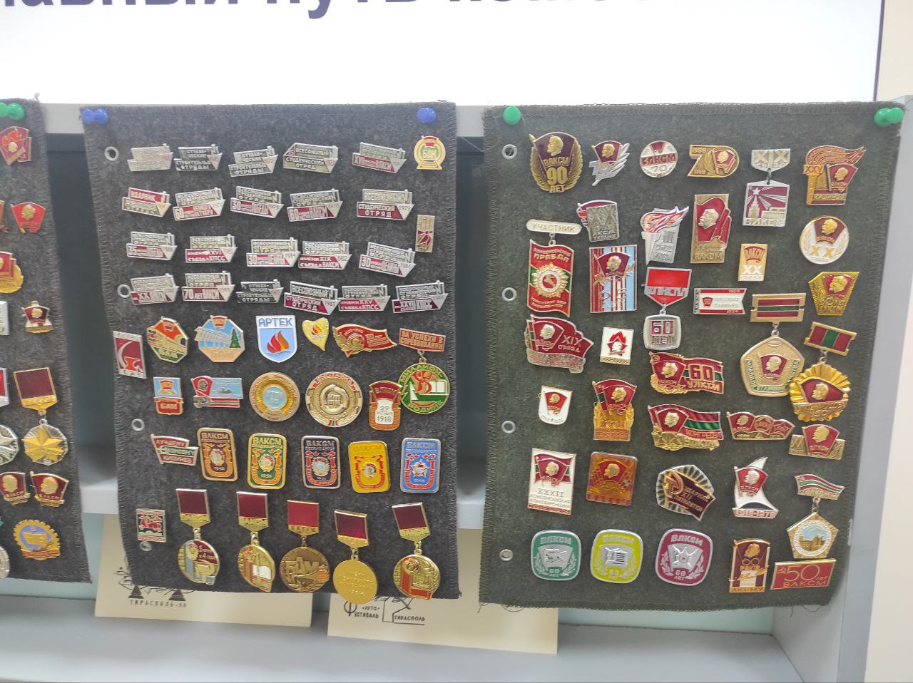 В экспозиции - значки, памятные знаки, конверты и статуэтки, отражающие яркие страницы комсомольской жизни