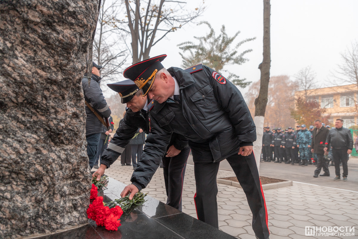 Тирасполь, 9 ноября. /Новости Приднестровья/. В Тирасполе в ходе торжественного собрания в преддверии Дня милиции открыли памятную стелу в честь сотрудников органов внутренних дел, погибших при исполнении служебного долга. Памятник установлен перед зданием столичного УВД.