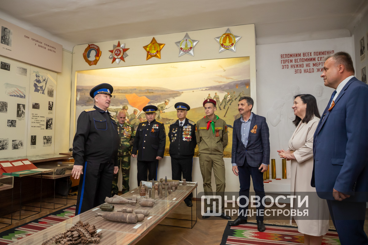 Представители черноморского казачества передали в музей колледжа макет танка Т-34, установленного на постаменте Мемориала Славы Тирасполя. Казаки попросили студентов узнать о боевом пути бронемашины и судьбе её экипажа.