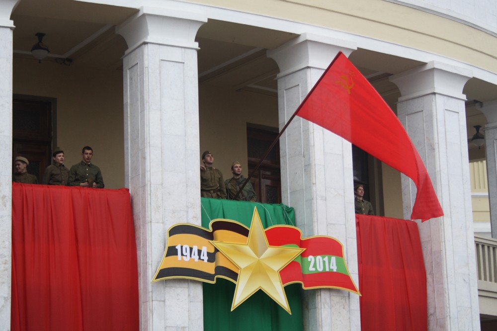 Героические события той поры были реконструированы через театральную постановку. Именно на здании театра в Тирасполе 12 апреля 1944 года было водружено знамя Победы.