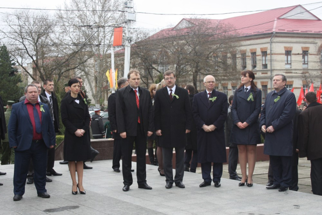 «Наши земляки принимали участие в Великой Отечественной войне с фашизмом, более половины из них не вернулись, их могилы расположены от Сталинграда до Берлина. В 1992 году Приднестровье снова столкнулось с румынским фашизмом», - подчеркнул, выступая на митинге, Глава государства Евгений Шевчук.