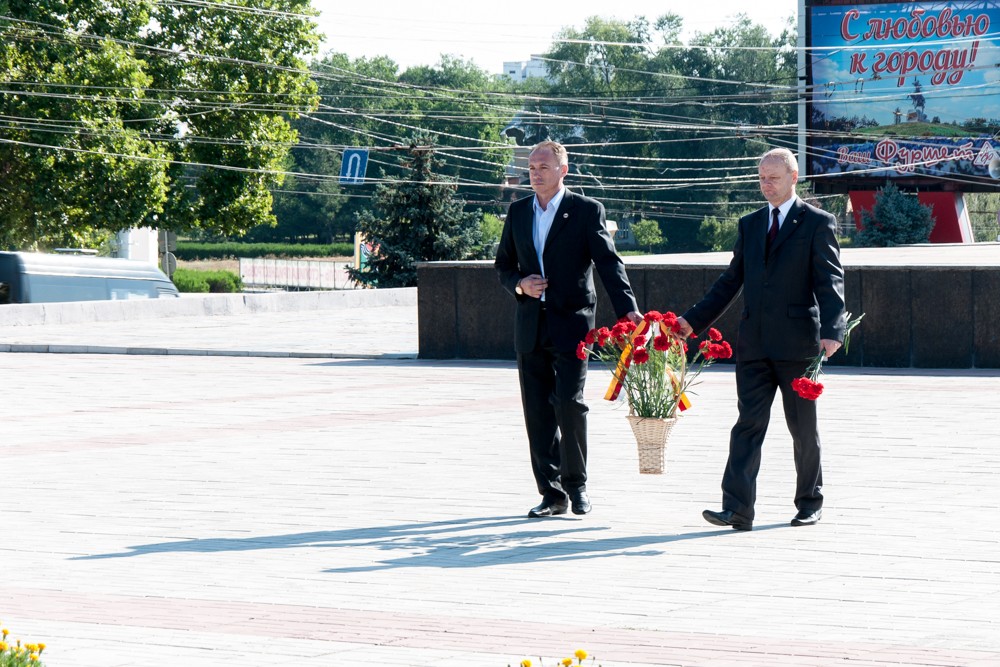 Собравшиеся возложили цветы к мемориальным плитам погибших в годы Великой Отечественной войны, памятнику воинам-афганцам, монументу Скорбящей матери, возведенному в память о погибших в 1990—1992 годах защитников Приднестровья.