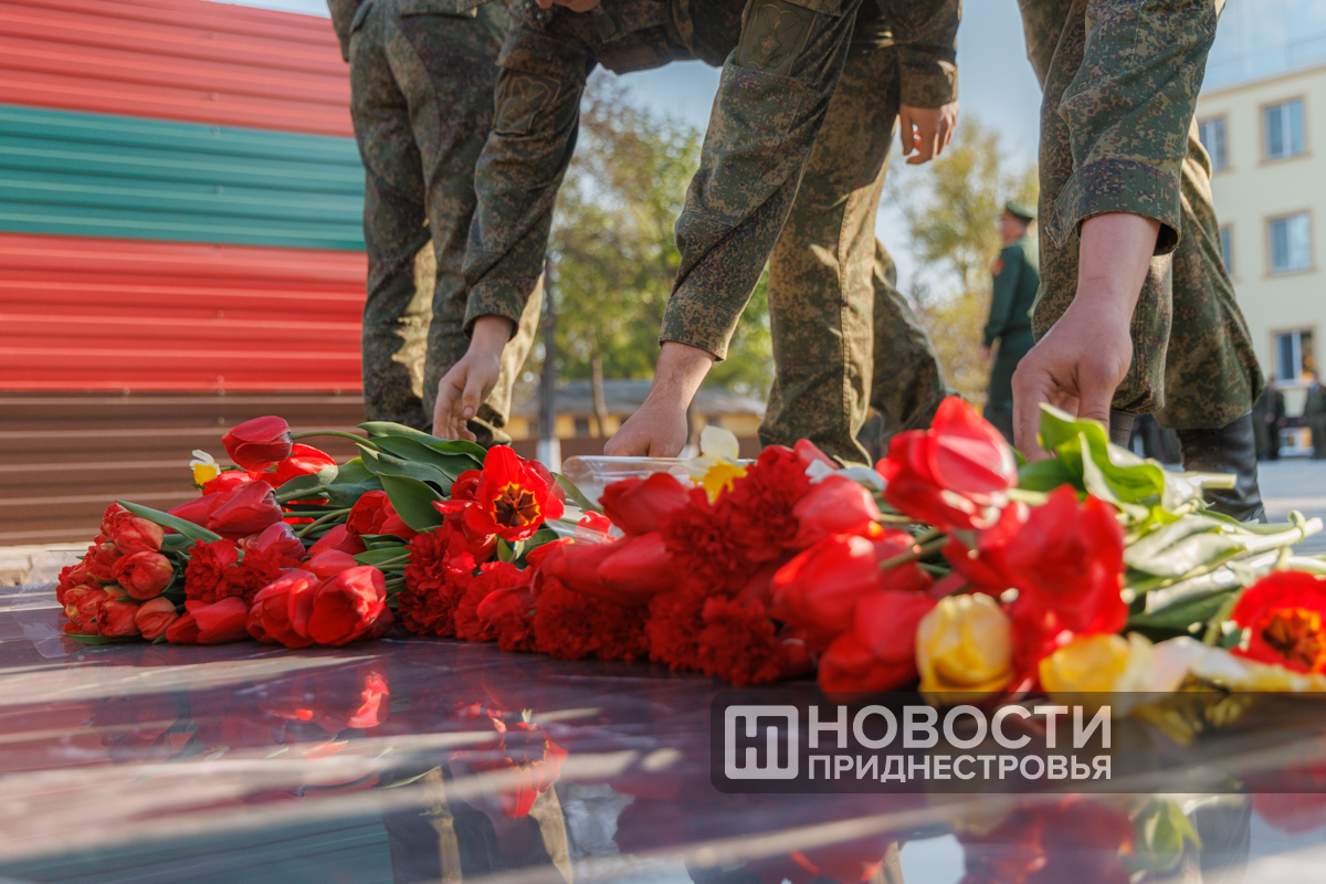 В память о событиях 1992 года и погибших военнослужащих первого батальона республиканской гвардии курсанты возложили цветы.
