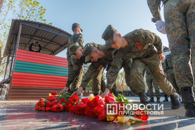 После просмотра документальной киноленты суворовцы и курсанты приехали в Покровский парк, чтобы возложить цветы к бюсту Александра Лебедя и памятнику военнослужащим 14-й армии.