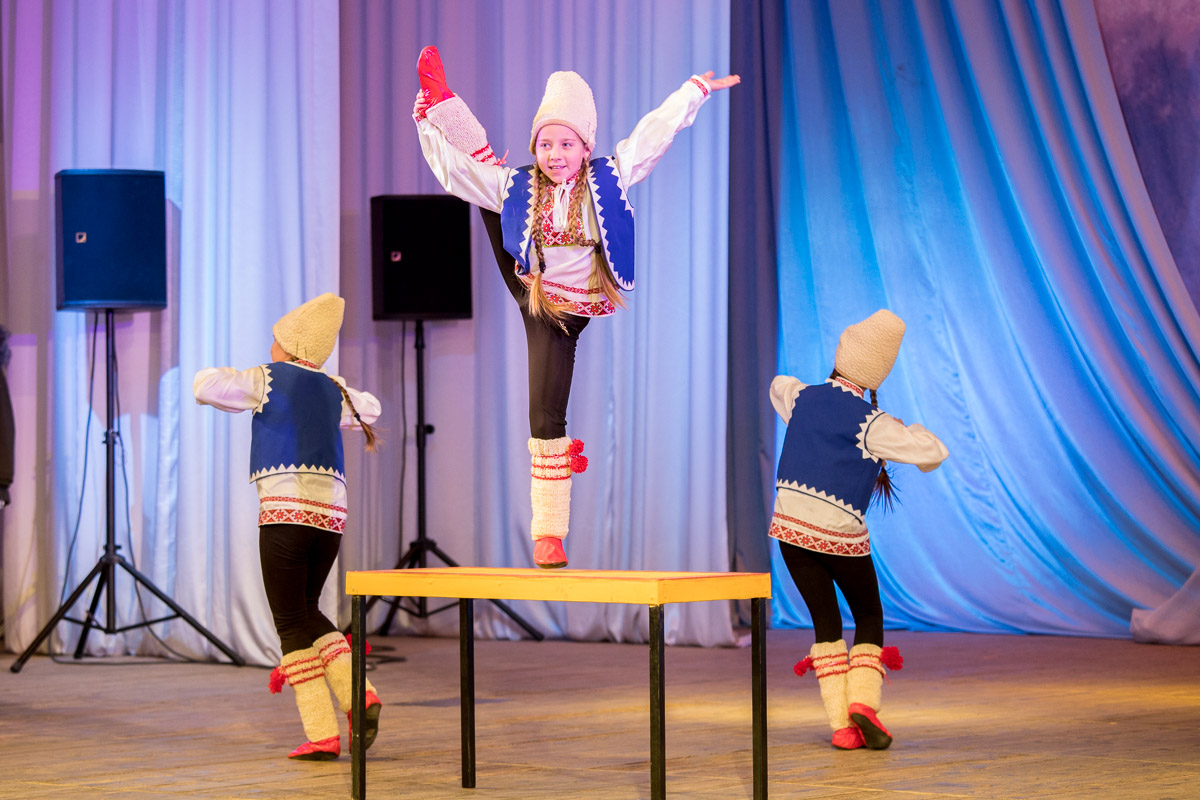 Так, танцевальный коллектив «Силуэт», представляющий Дом культуры села Карагаш, начал свое выступление с молдавского танца. Шестилетние артисты в образе фиксиков исполнили композицию «Хора ши сырба».