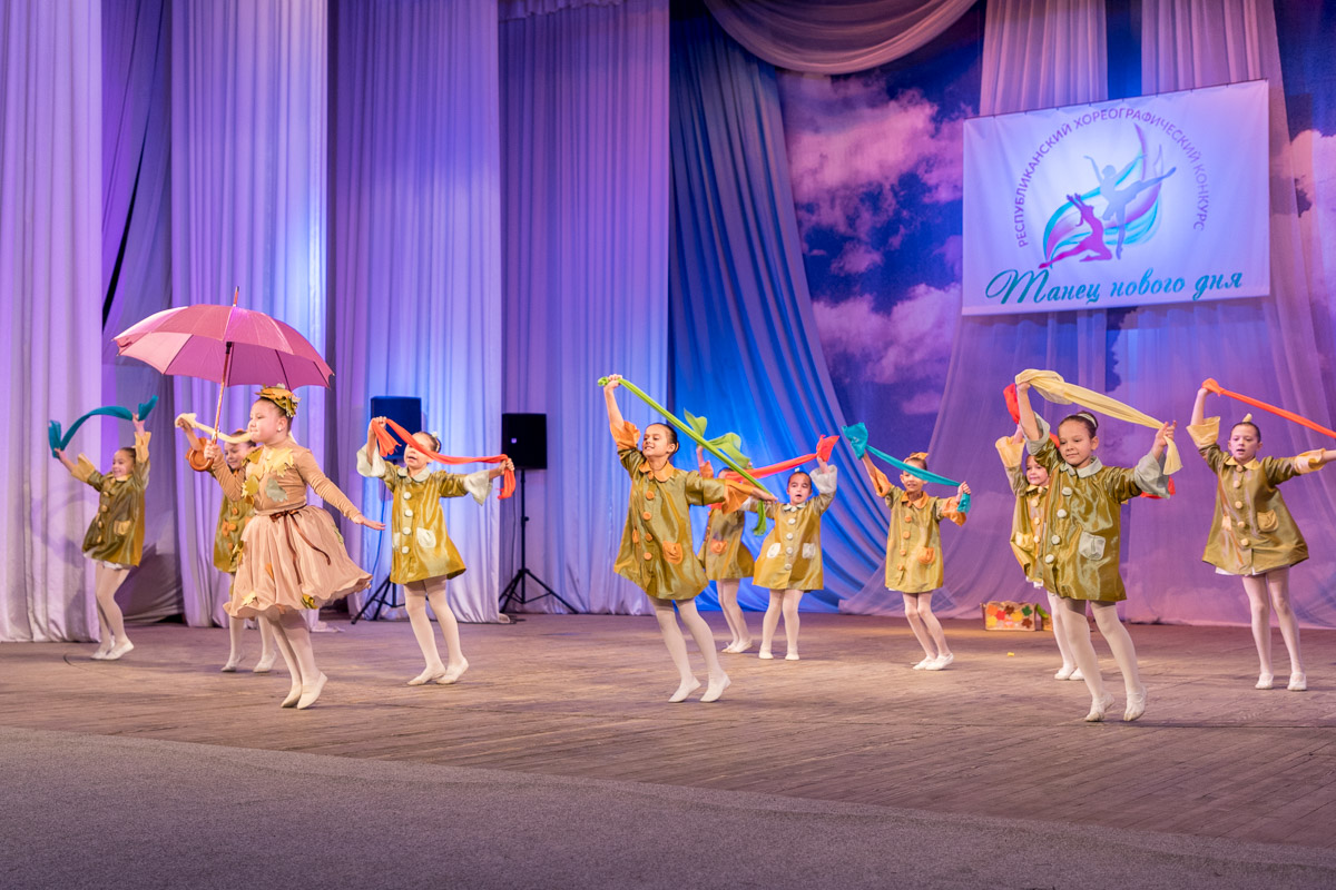 На главной сцене Дворца Республики свою грацию и пластику демонстрировали 28 хореографических коллективов. Это победители отборочных туров, прошедших в городах и районах республики, в целом более 450 участников от 3,5 до 55 лет. Все коллективы приготовили к финалу по несколько номеров.